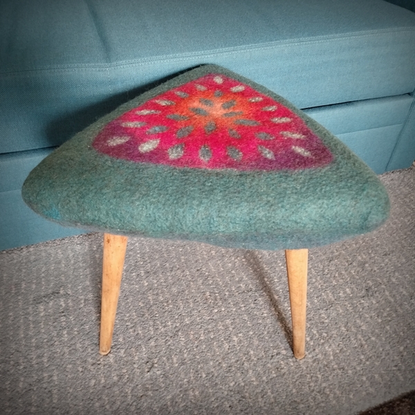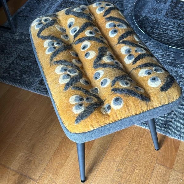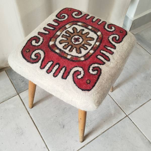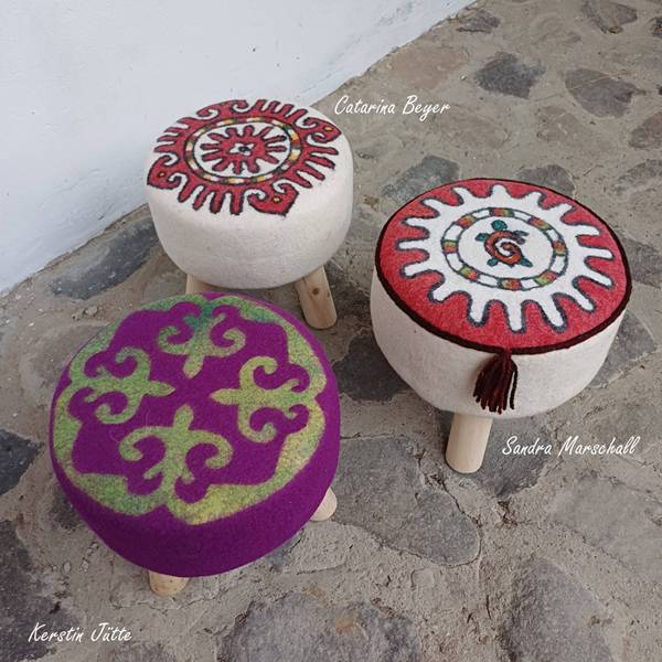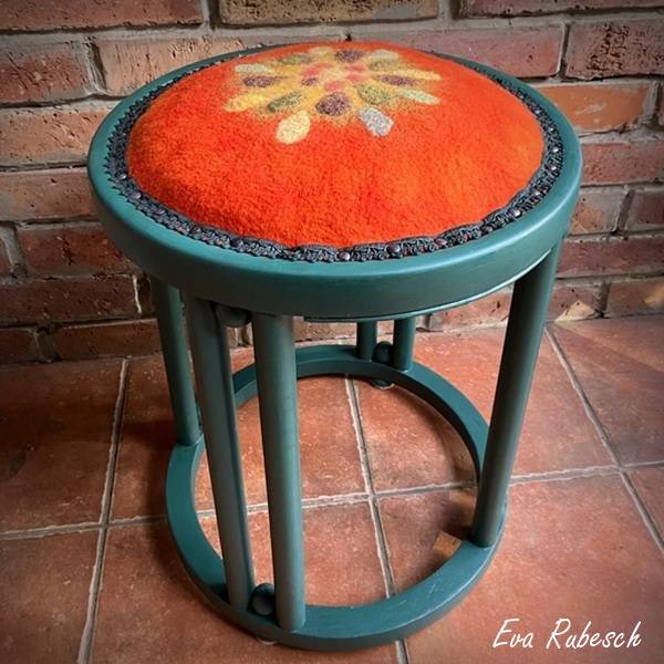 A flea-market chair or an old stool from Grandma often cries out for a new cover. With Hungarian feltmaker Bea Németh, you will learn how to felt a fitting new cover for the “old foam” and put it on — no upholsterer’s knowledge and tools required.