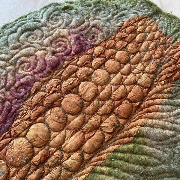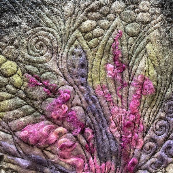 One surface design method combined with wool locks is shown in the course, but you can work entirely individually if you would prefer a different one.